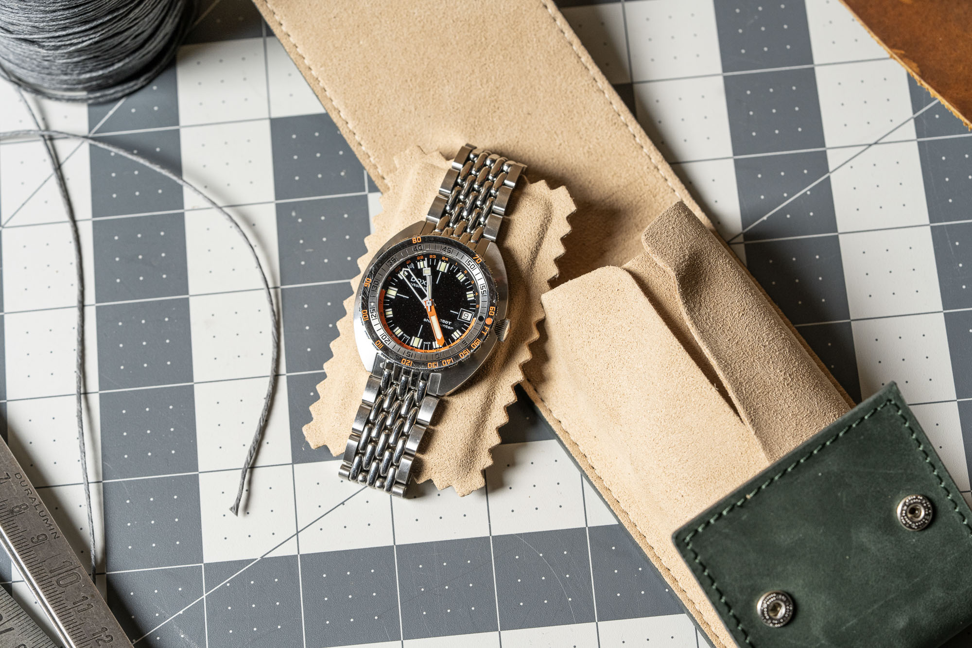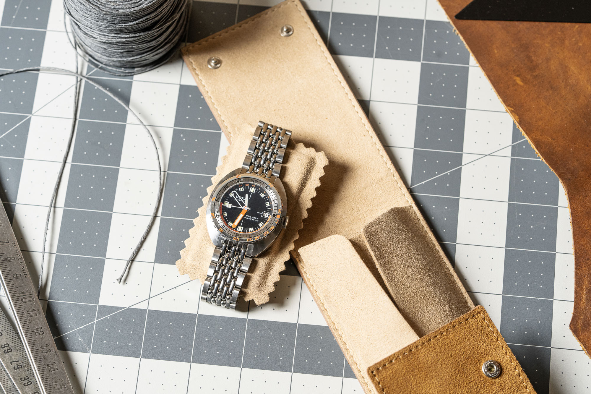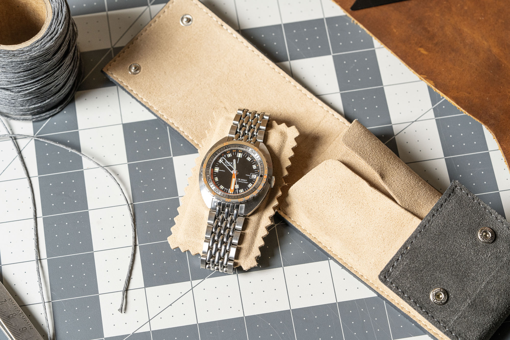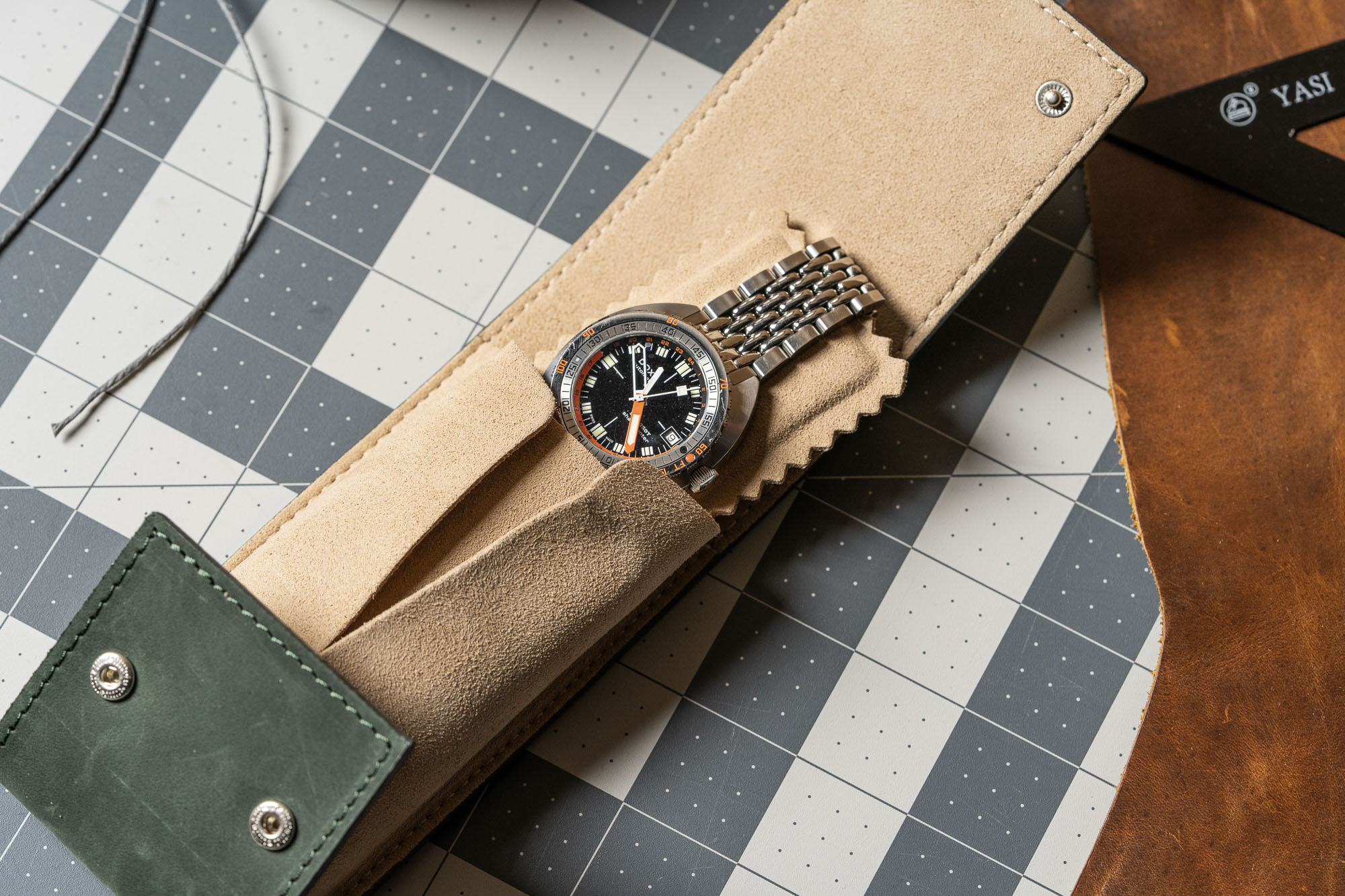 A nice watch needs a nice house. A warm place to live when it’s not on your wrist. There are boxes, rolls, tubes, and other places to keep your timepieces, but sometimes the simplest solution is the best. A pouch. A compact container for your watch that keeps it safe from scratches and dust on your bedside table, in your bag, or wherever else you put your watches.