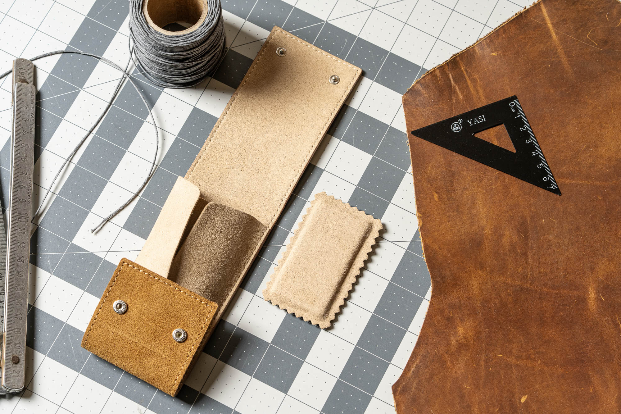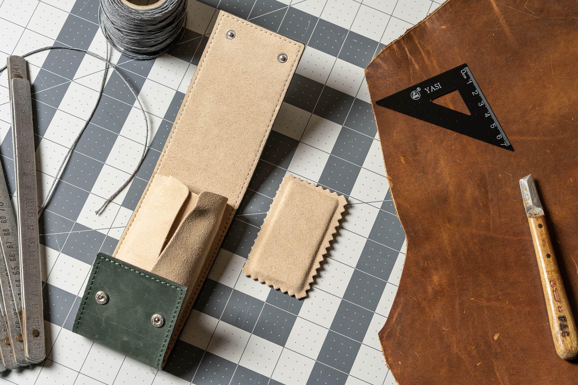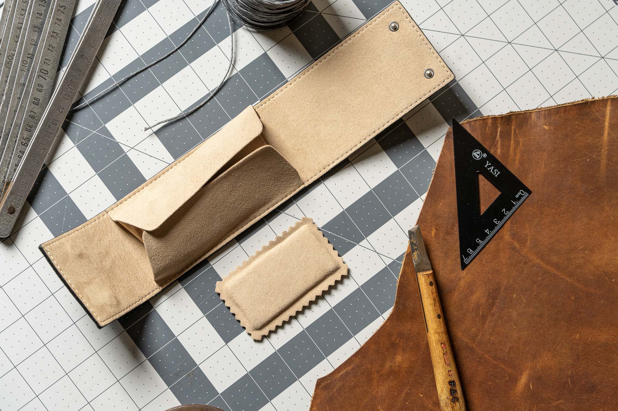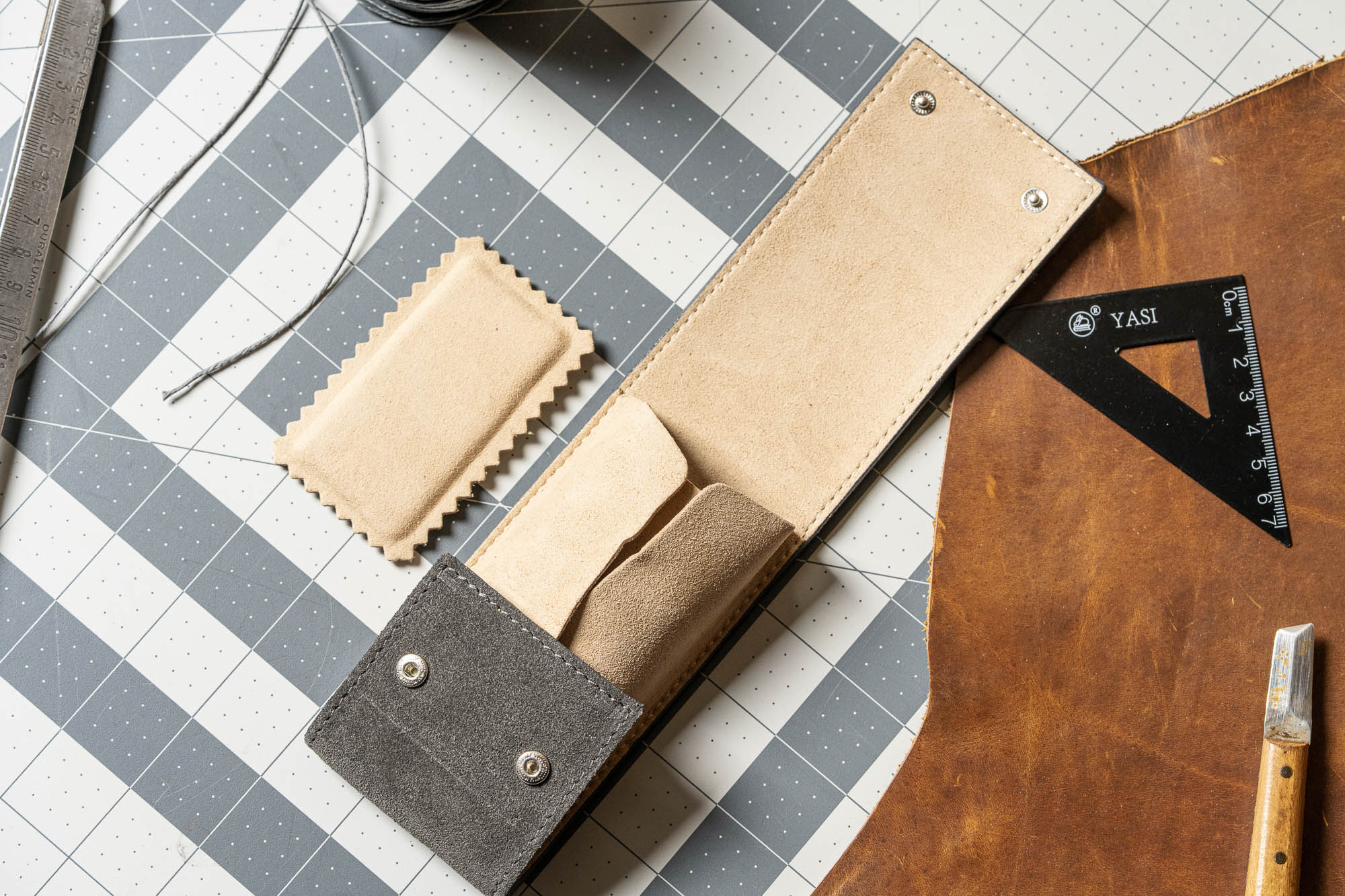 The Leather Service Watch Pouch is currently available in four colors: Carbon Black, Alpine Green, Snuff Brown, and Cinder Gray, all lined with Beige Alcantara. Carbon Black and Alpine Green are both waxed nubuck leathers with even, matte surfaces. Snuff Brown and Cinder Gray are classic suedes with an attractive texture.