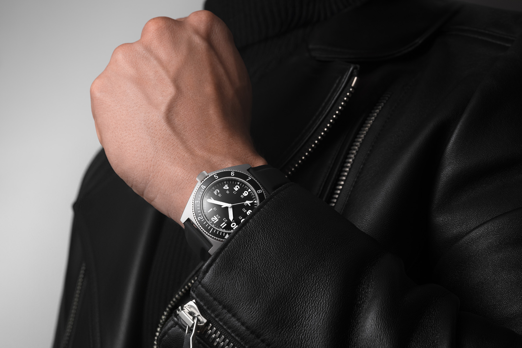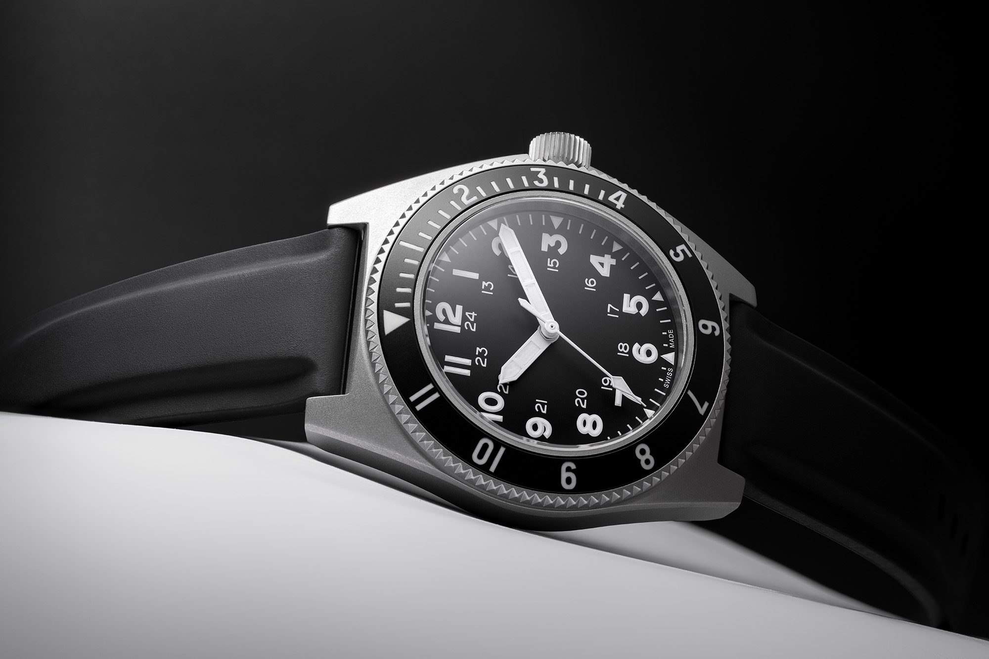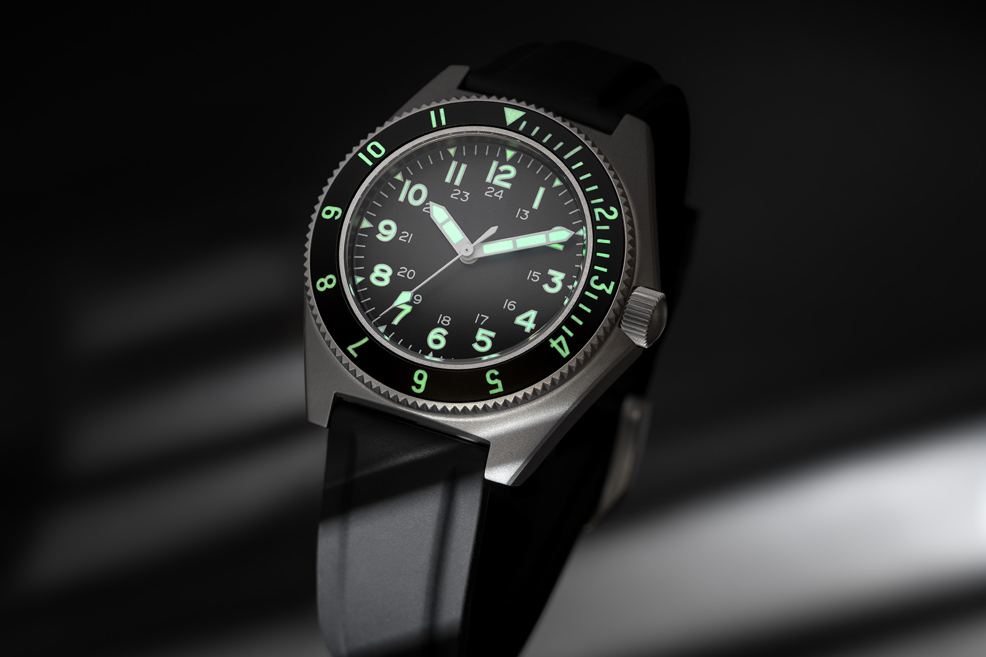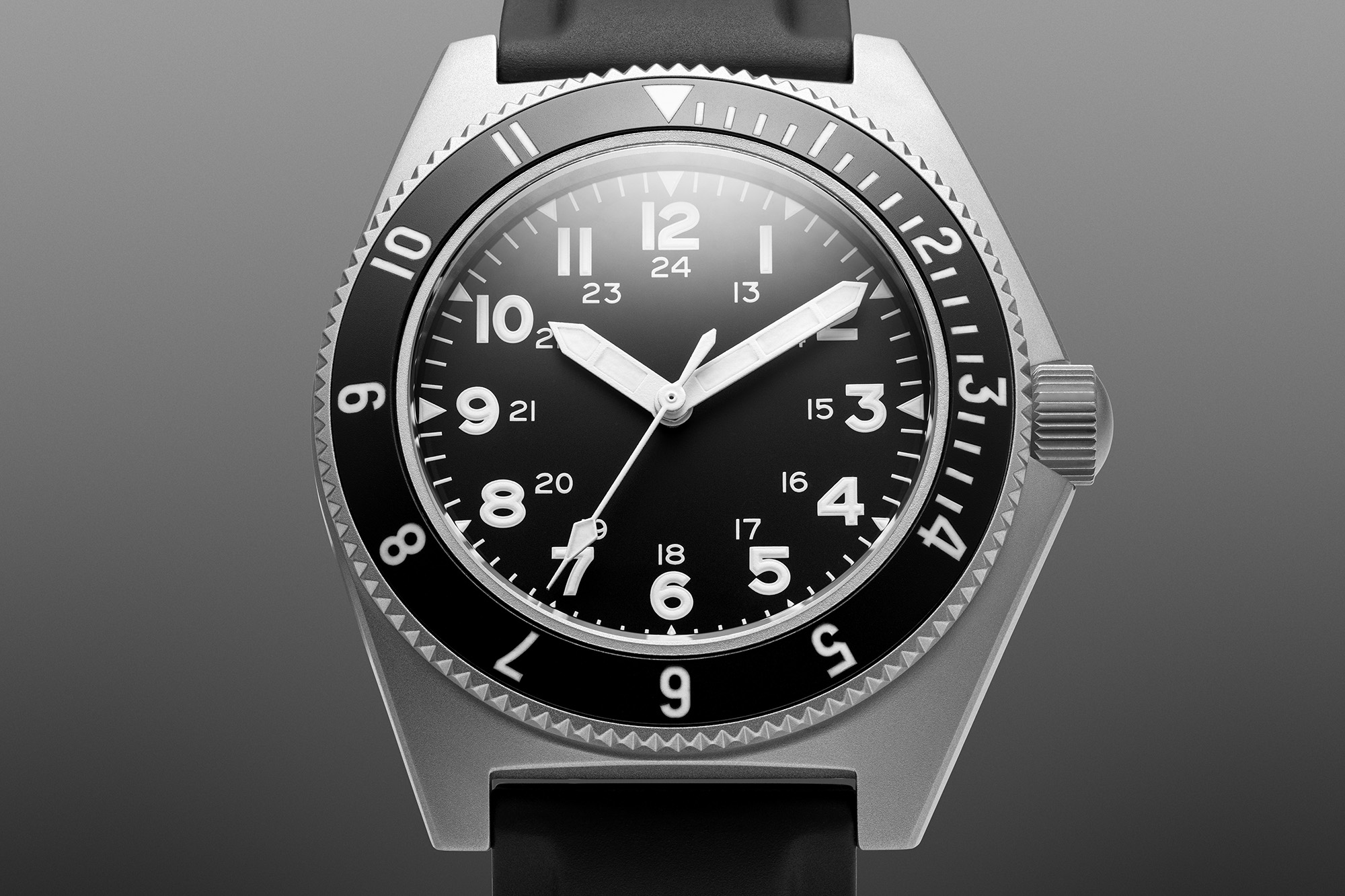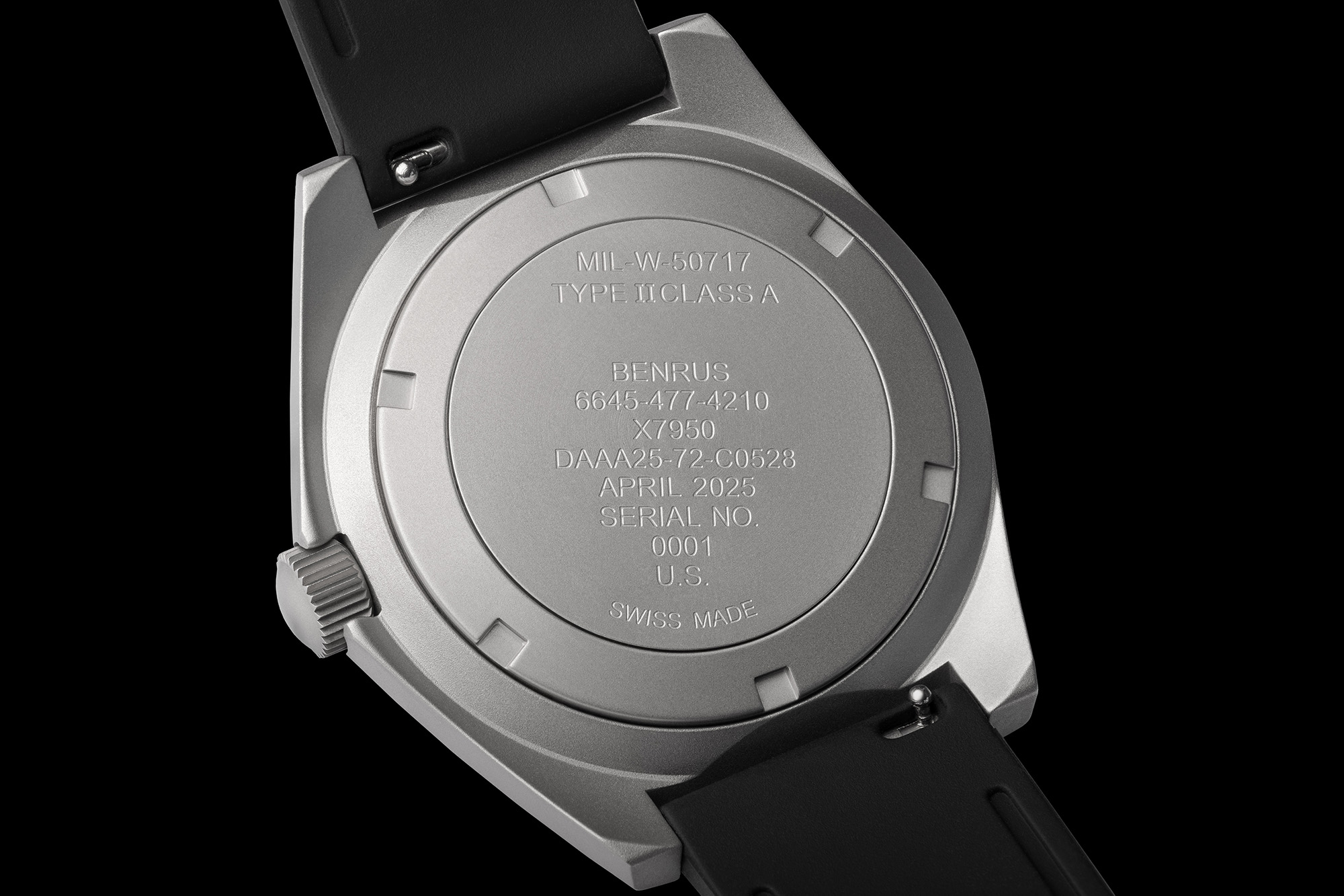 Inspired by its original issue to U.S. elite military units under the MIL‑W‑50717 specification in the 1970s, the BENRUS Type 2 Mil Spec is a modern reinterpretation of a veteran tool watch. Built for the field yet refined for civilian wear, this timepiece blends rugged heritage with contemporary precision. The matte black dial features high‑contrast Arabic numerals, a 12/24‑hour inner track, and a clean layout designed for speed and legibility under pressure.